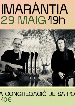 El duet illenc Imaràntia presenta un segon disc, inspirat a Formentera, amb temes que busquen arribar al cor de la gent sense perdre l’essència. La fundadora del conjunt 4 de Copes, Maria José Cardona, va formar fa uns anys el duet Imaràntia amb el productor i músic Miquel Brunet per gravar un disc homònim, editat per Ona Edicions el 2013. El violinista i percussionista Eduard Riera s’ha unit ara a uns directes que tenen la voluntat de difondre l’ànima illenca.
